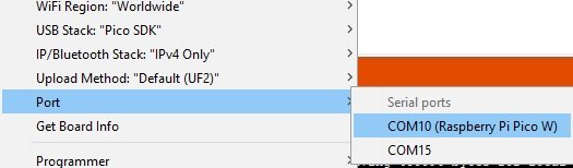 Select your target board from the list of Rasberry PI RP2040 boards. In this case Pi Pico W