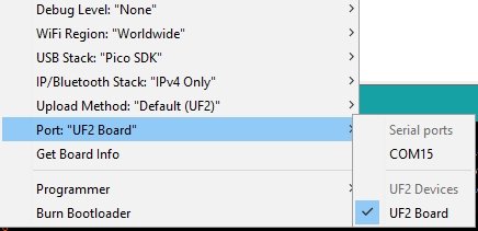 You usually do not need to re-connect the board with the Boot button held down (other than the first time) and can now just leave the port selection as COM10 (Raspberry Pi Pico .. ). However if you loose the COM port setting (see below), you can re-connect with the Boot pushbutton held down to force the board back into UF2 Board mode for programming.