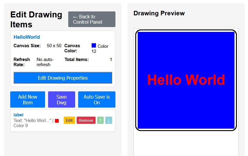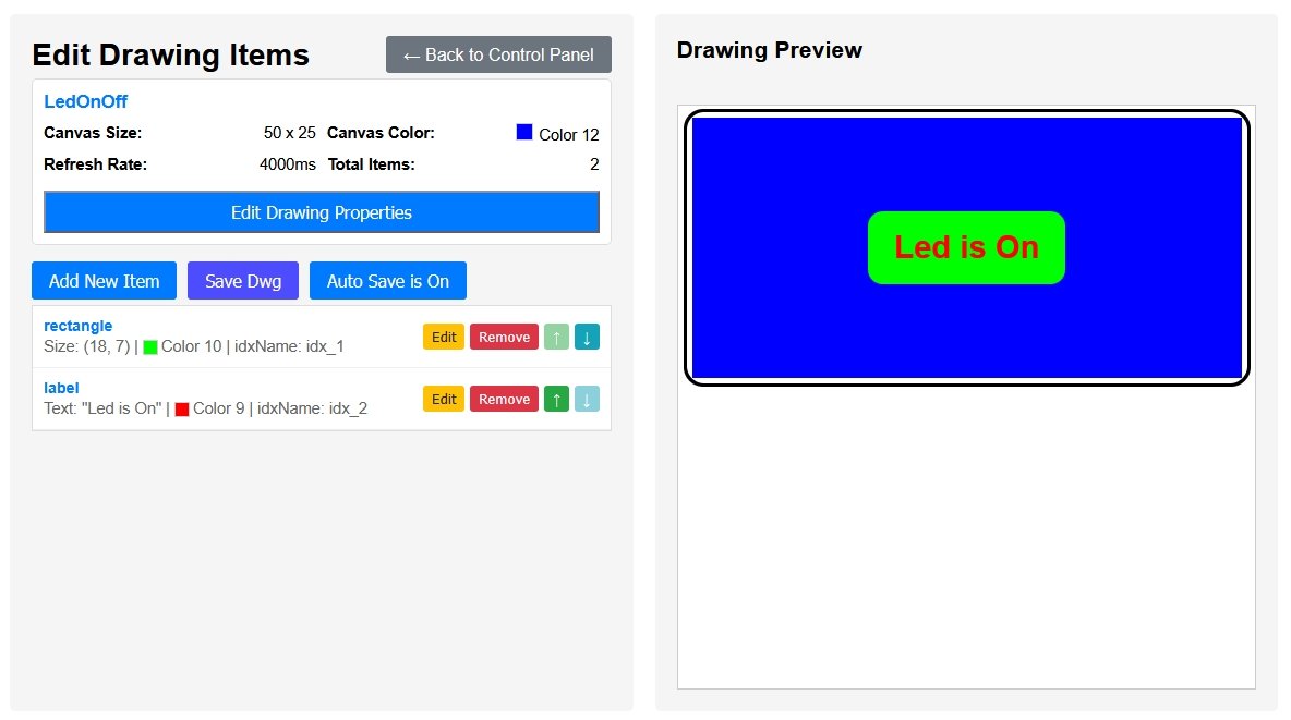 The easiest way to create the update code is to edit the drawing items to the colour and text you want for led off versus on and then generate the new drawing files.