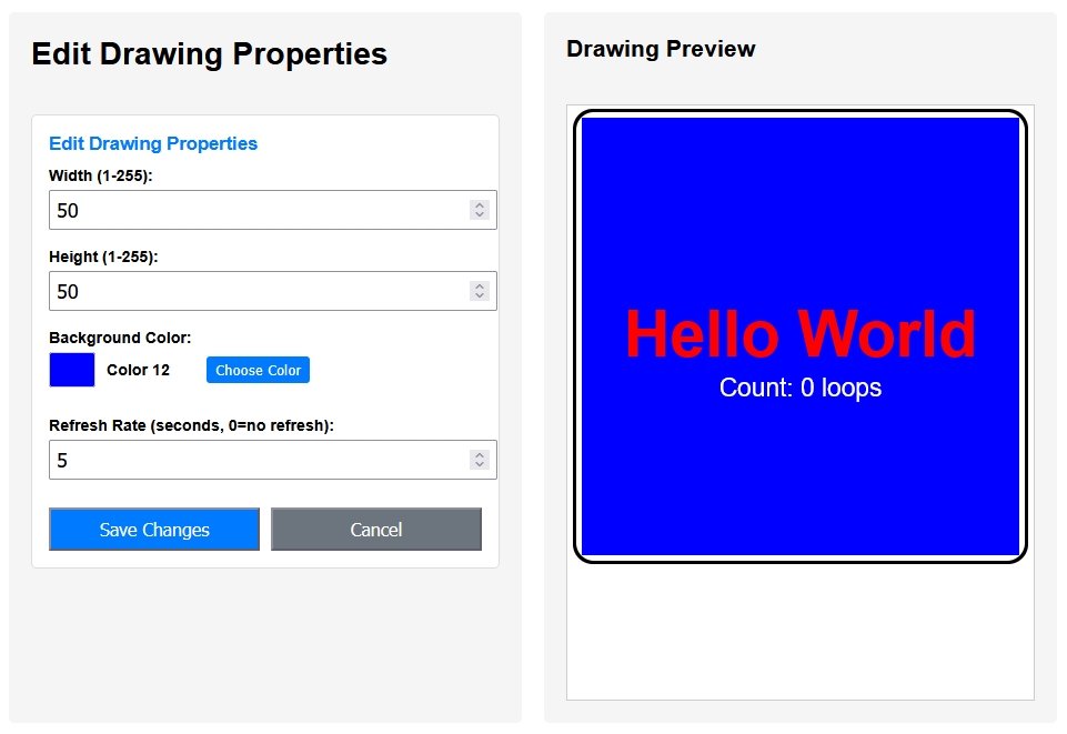 Open the pfodWebDesigner and Create Drawing, called LedOnOff with dimensions 50 x 25, background color Blue (12) with a 4 second refresh.