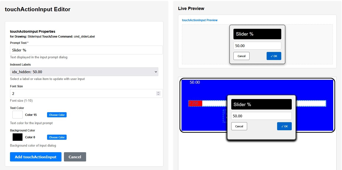 Choose a suitable color for the prompt text and background. You can then click on the Slider % touchZone in the preview to see the touchActionInput in action.