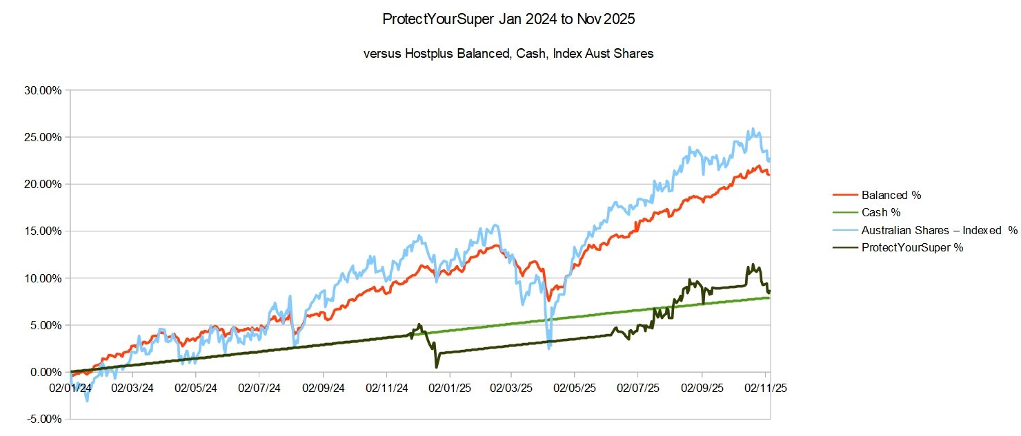 ProtectYourSuper is currently indicating a switch to Cash. The performance over the last two (2) years has not been noticeable better than cash. See the chart below