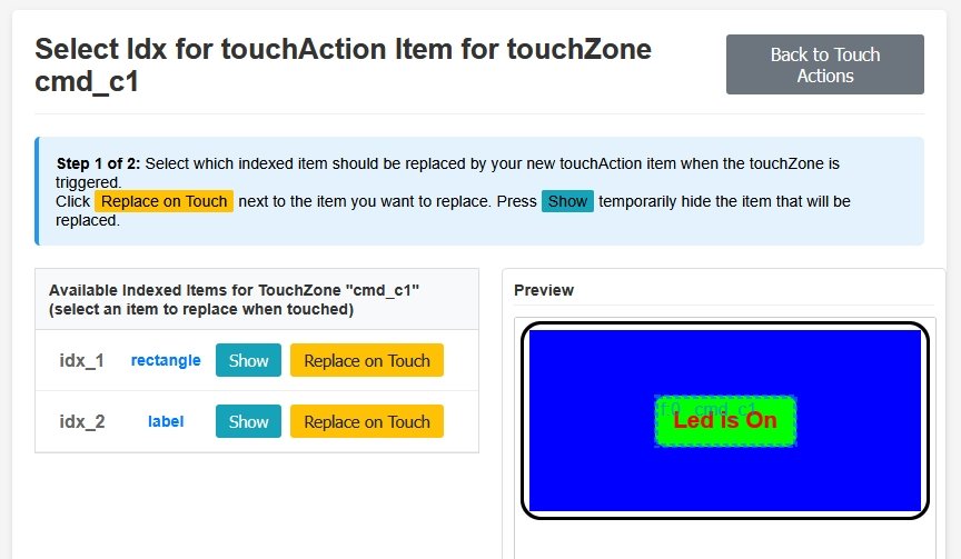 Clicking on the Show buttons will hide the respective drawing item so you can check what item your touchAction will replace.