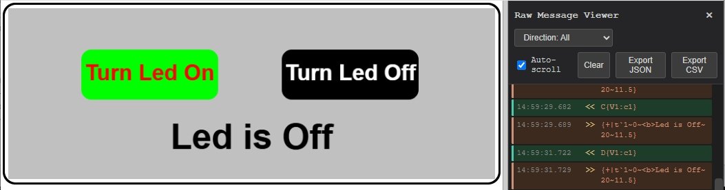 Here are the side by side results for Hello World on the Android pfodApp and the web base pfodWeb BLE or HTTP / Tcp/IP sketches