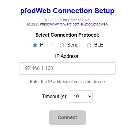 18th October 2025 – pfodWeb V2 can now connect via Serial, BLE and WiFi (HTTP)